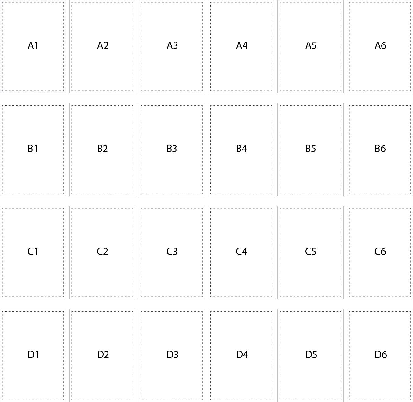 Number of A4 size or US letter size Pattern pages depending on the size of your pattern. Once you get all your pattern pages printed, check the scale to see the accuracy. If you are happy with the pattern, organize the pagers together. The page numbers are numbered horizontally as A1, A2, A3, A4 etc. and vertically A1, B1, C1, D1, then A2, B2, C2, etc. as shown below.