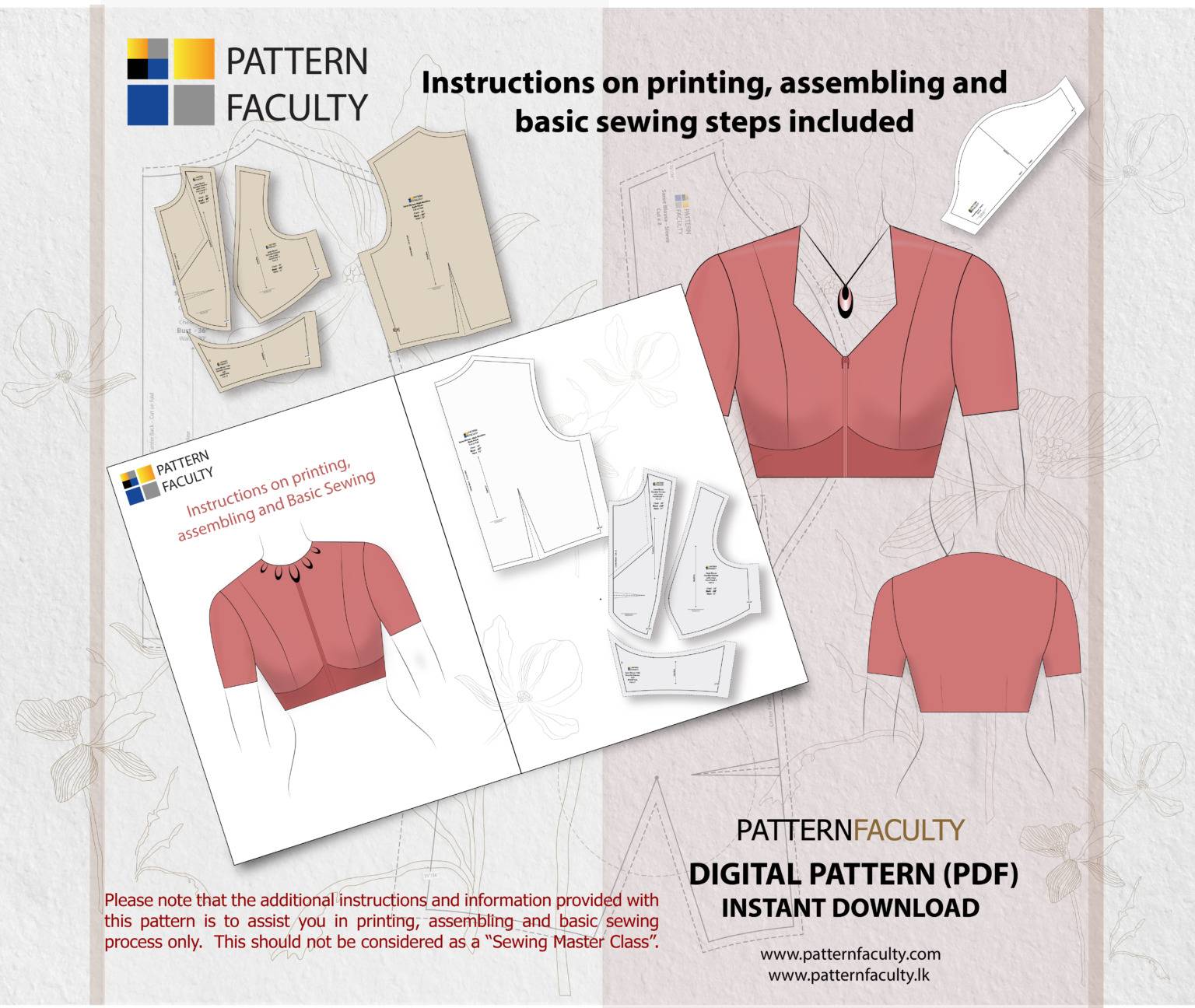 The Pattern Faculty does not provide any guarantees related to manufacturing, finishing, fitting, quality, or customer satisfaction for the finished goods or products you create using the pattern. Once again, you assume full responsibility when using the pattern.