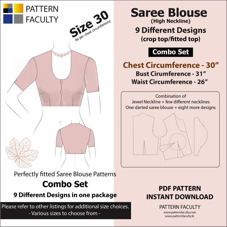 Saree Blouses – High Neckline – 9 Different styles (cuts) Size 30.