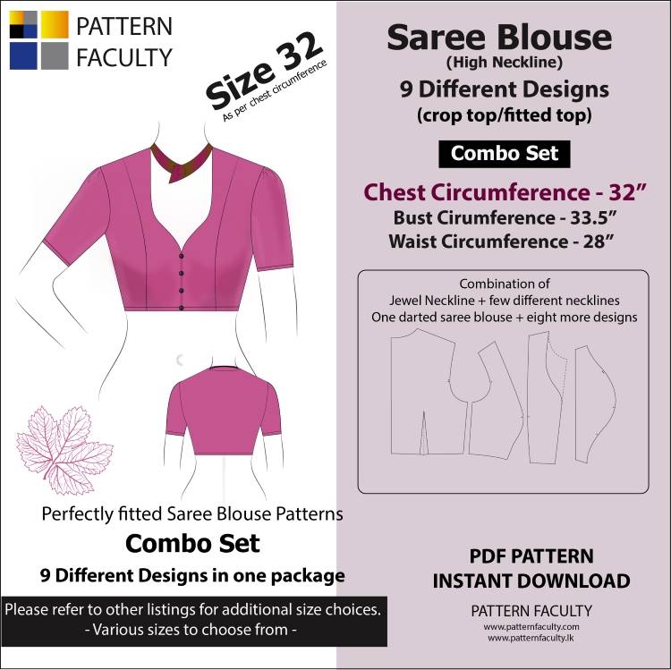 Saree Blouses – High Neckline – 9 Different styles (cuts) Size 32.